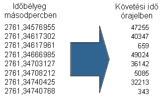 A PTR-02 készülék időbélyegek helyett követési időkkel dolgozik. A követési idő az egymás után beérkező impulzusok között eltelt idő. Míg az időbélyegek értéke korlátlanul növekszik, a követési idők tartománya nem változik. Az időbélyegeket általában nagypontosságú valós számként ábrázolják. A követési idő ezzel szemben egyszerűen a két impulzus beérkezése között leszámolt órajelimpulzusok száma, azaz egy egész szám. Ezeket gyorsabban lehet feldolgozni, mint az időbélyegeket, és a létrejövő adatfájl is rövidebb.