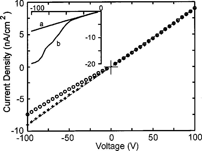 corresponding to a resistivity 1.8×1011 Ω cm. Two curves measured before