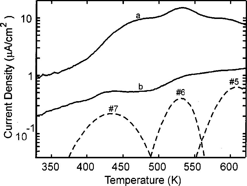 corresponding to deep levels Nos. 5-7 are reported in the bottom (dashed lines), with arbitrary