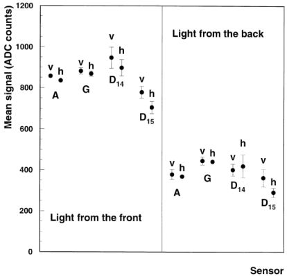 The sensors were illuminated with the uniform white light (2.3) on both faces. The irradiance was