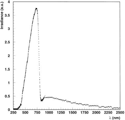 The white-light spectrum, in terms of the irradiance as a function of the wavelengths emitted by the lamp, is shown in Fig. 4.